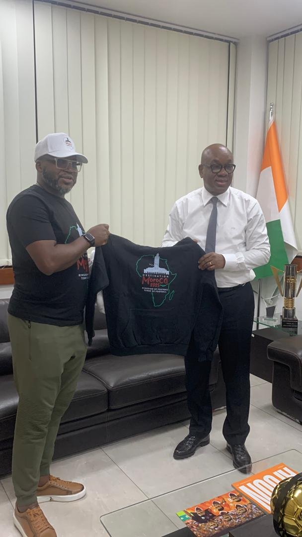 Dans le cadre de l’initiative continentale « Destination Maroc 2025 : Terre de Football », la délégation engagée dans le Road Trip Cotonou–Rabat a été chaleureusement accueillie ce jeudi par Yacine Idriss Diallo, président de la Fédération Ivoirienne de Football (FIF). La rencontre s’est tenue au siège fédéral à Abidjan, marquant une étape institutionnelle clé pour ce projet à forte portée africaine.